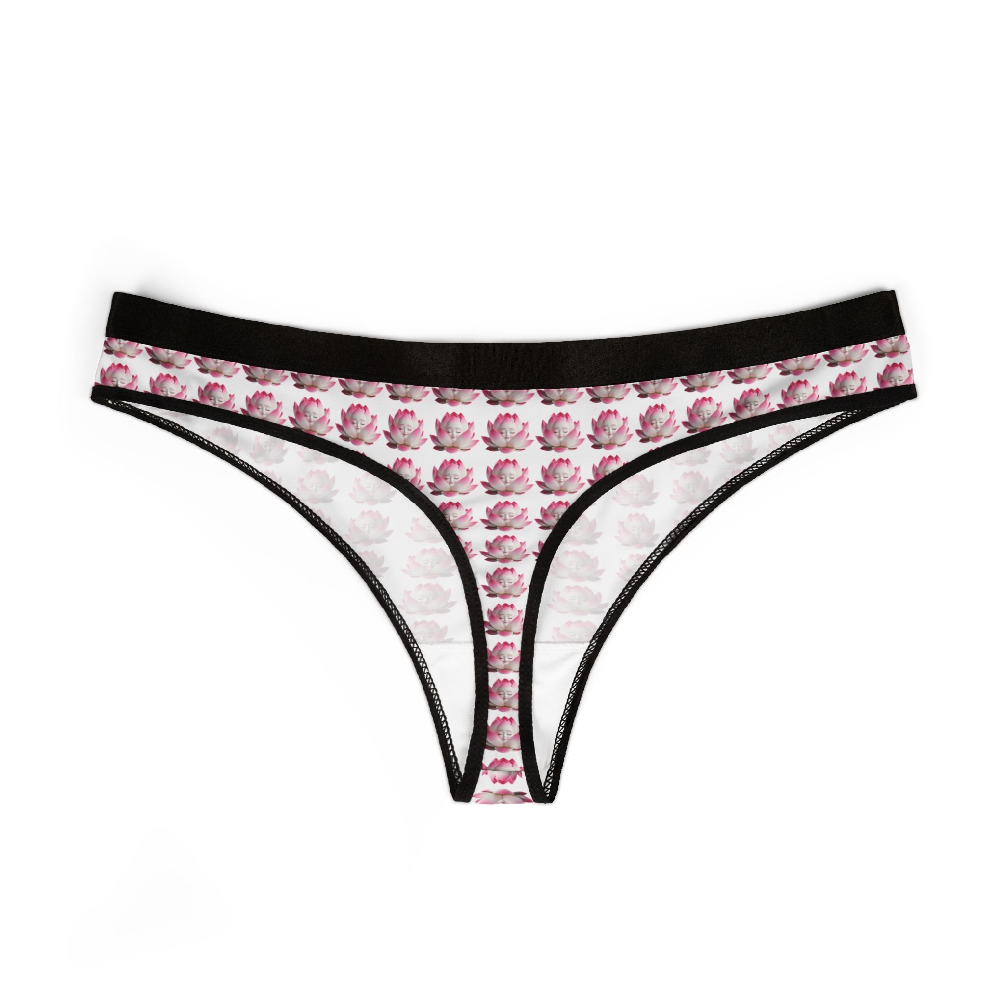 Soft, feminine, and quietly bold — this thong brings a tasteful touch of floral art to everyday wear. The pink lotus motif repeats across a smooth, slightly satiny surface that moves with you. Lightweight and breathable, the fabric feels gentle against skin while the wide black elastic waistband keeps the silhouette secure without digging in. Wear it under skirts or slim pants, or slip it on for a quiet confidence boost during a day that needs a little beauty. For moments when you want something pretty and practical, the lotus pattern reads like a private charm — subtle, calm, and thoughtfully made.