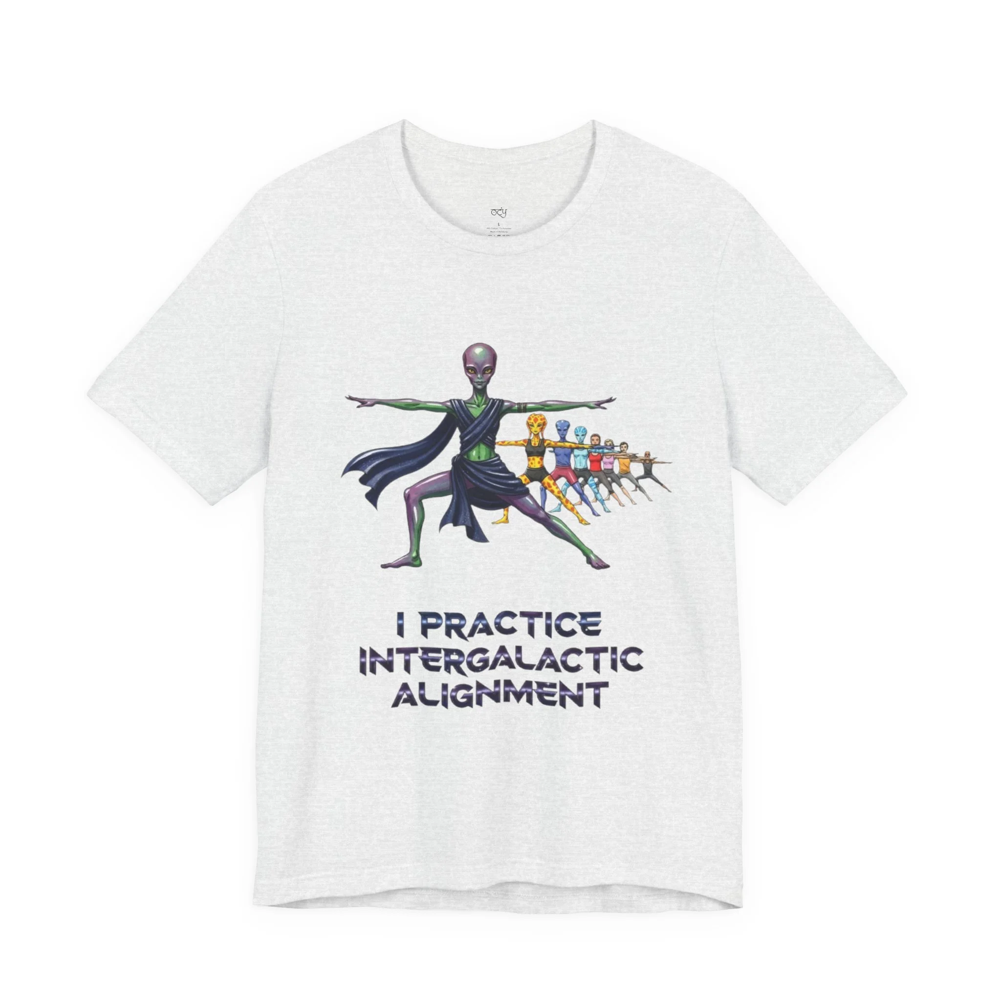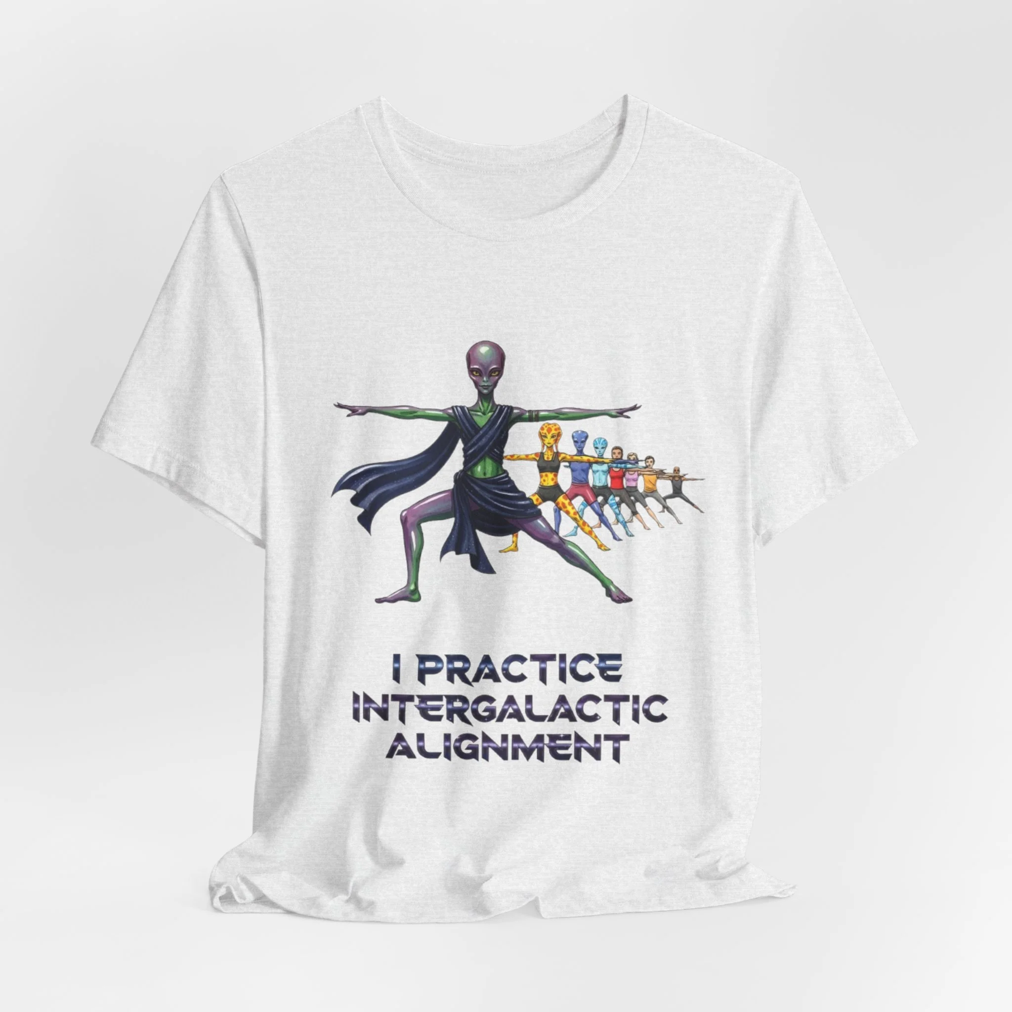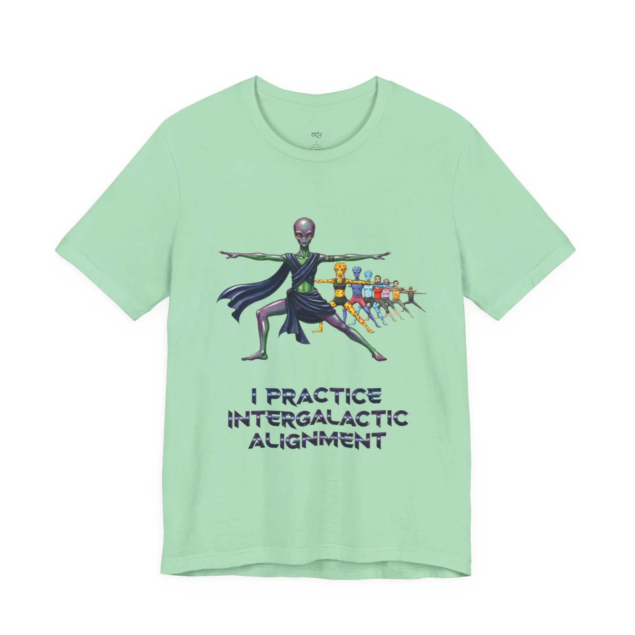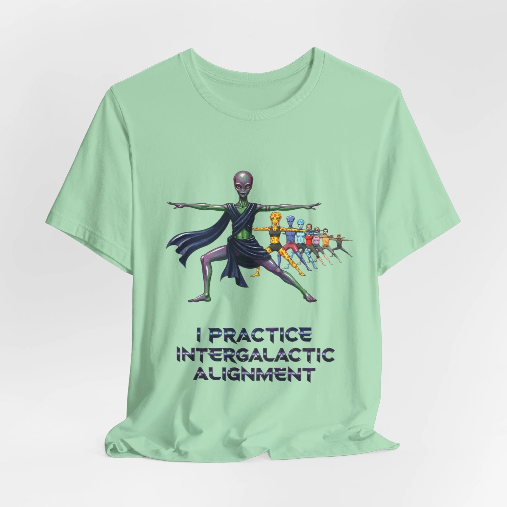 Alien Yoga T-Shirt — "I Practice Intergalactic Alignment" Graphic Tee — Unisex