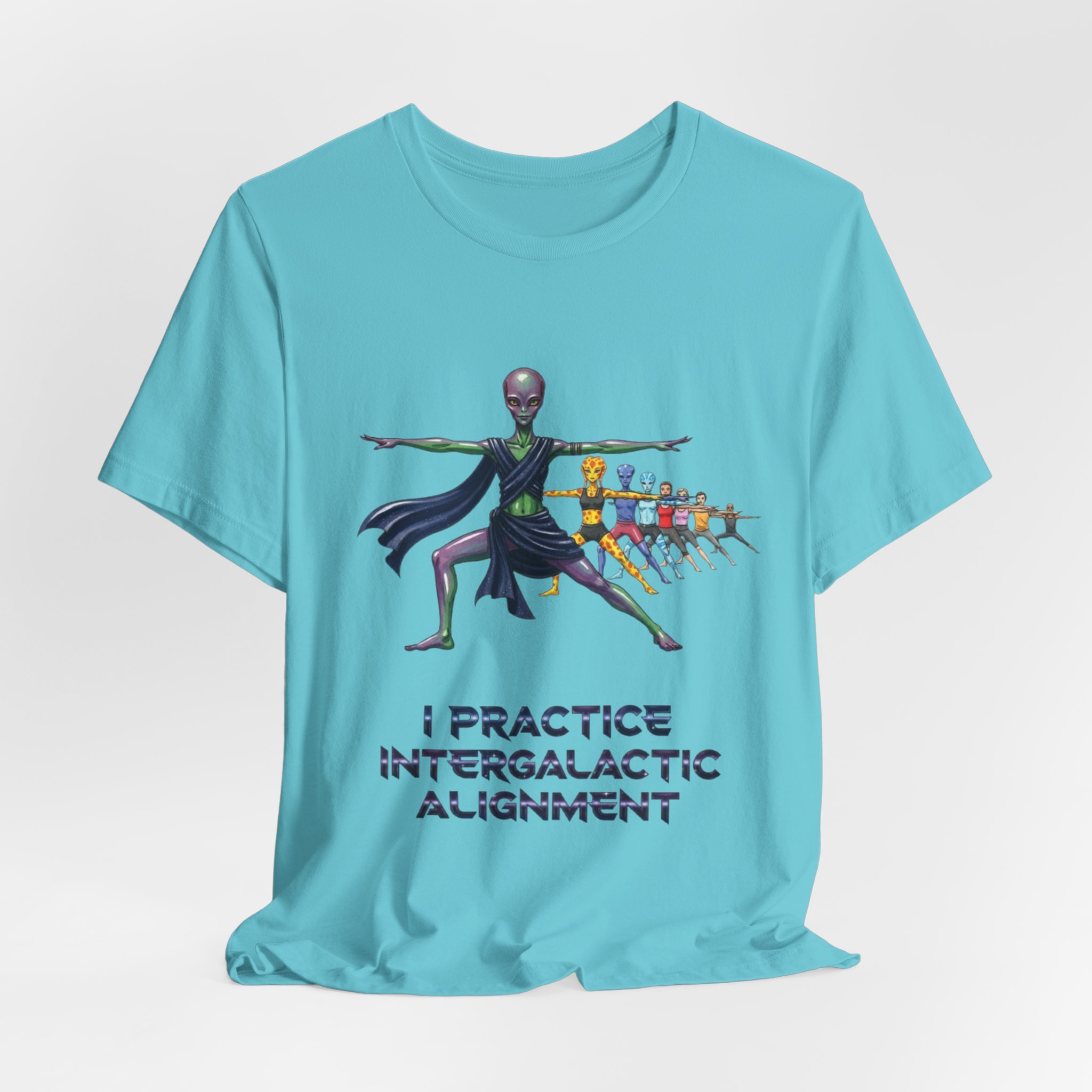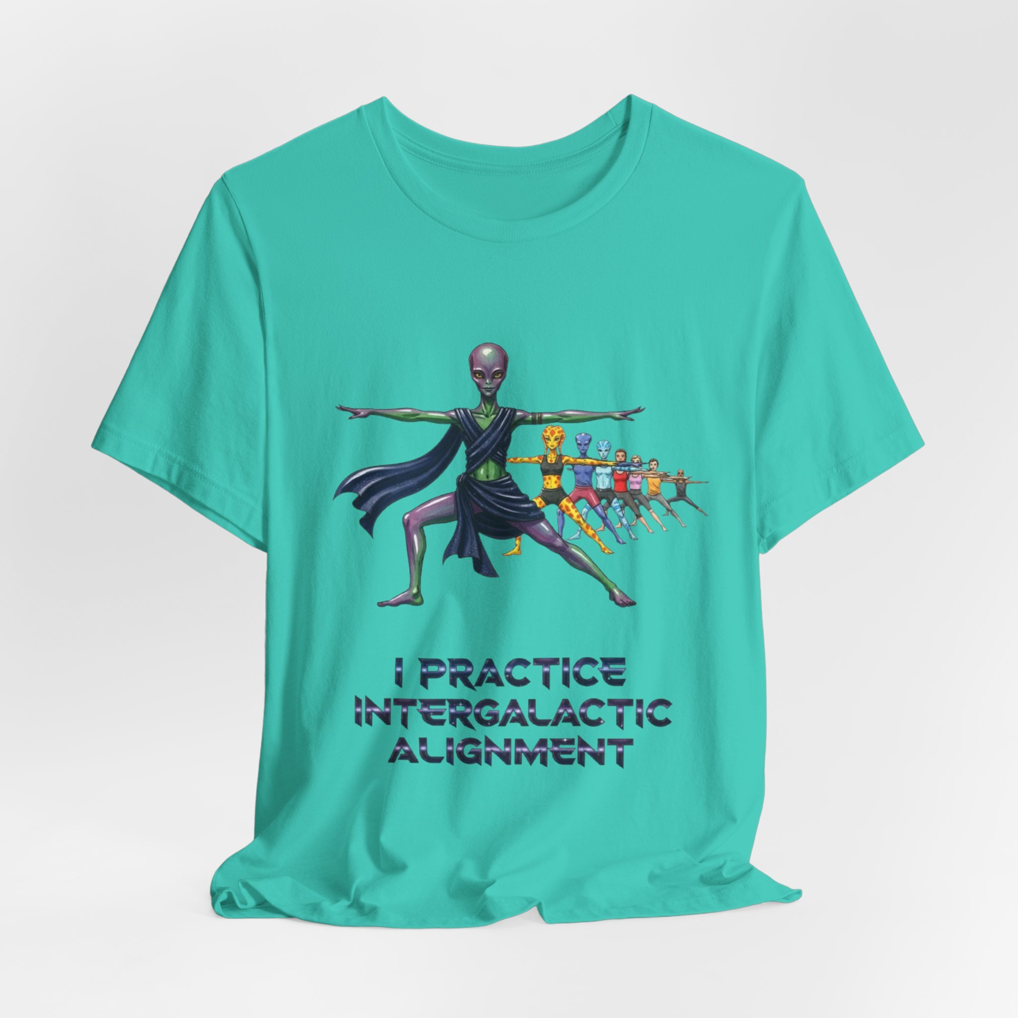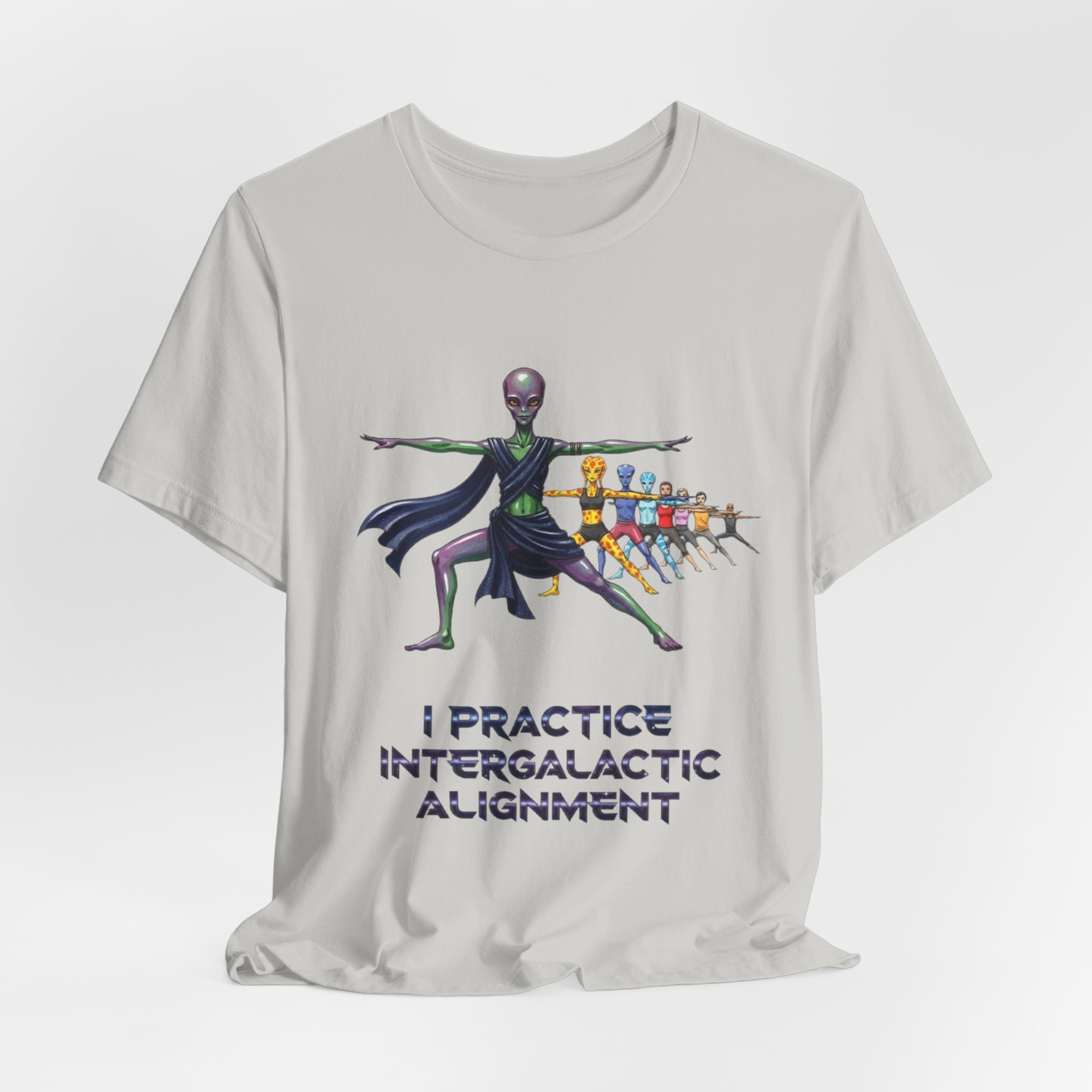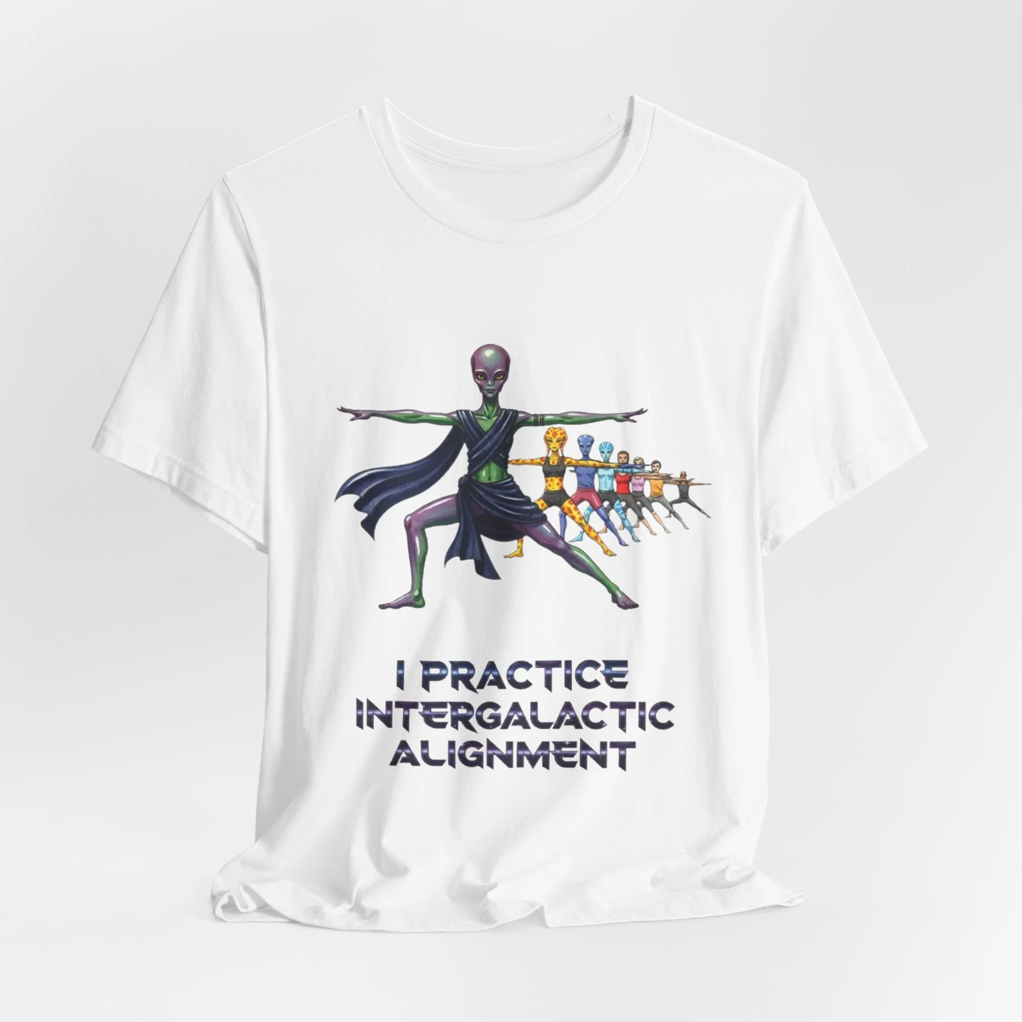 Alien Yoga T-Shirt — "I Practice Intergalactic Alignment" Graphic Tee — Unisex