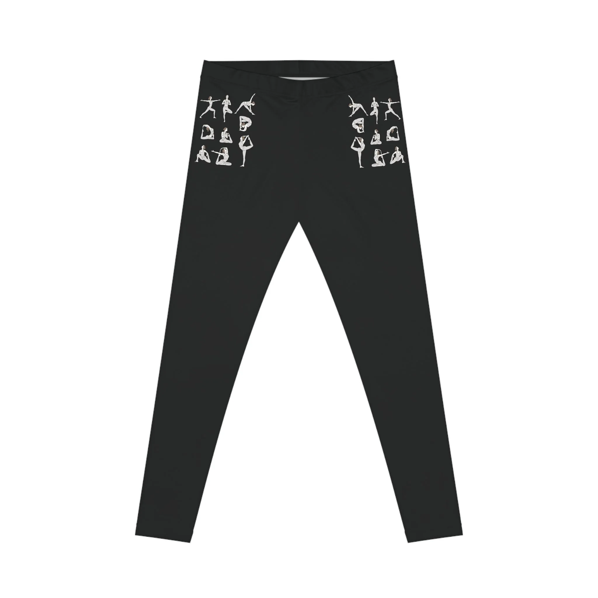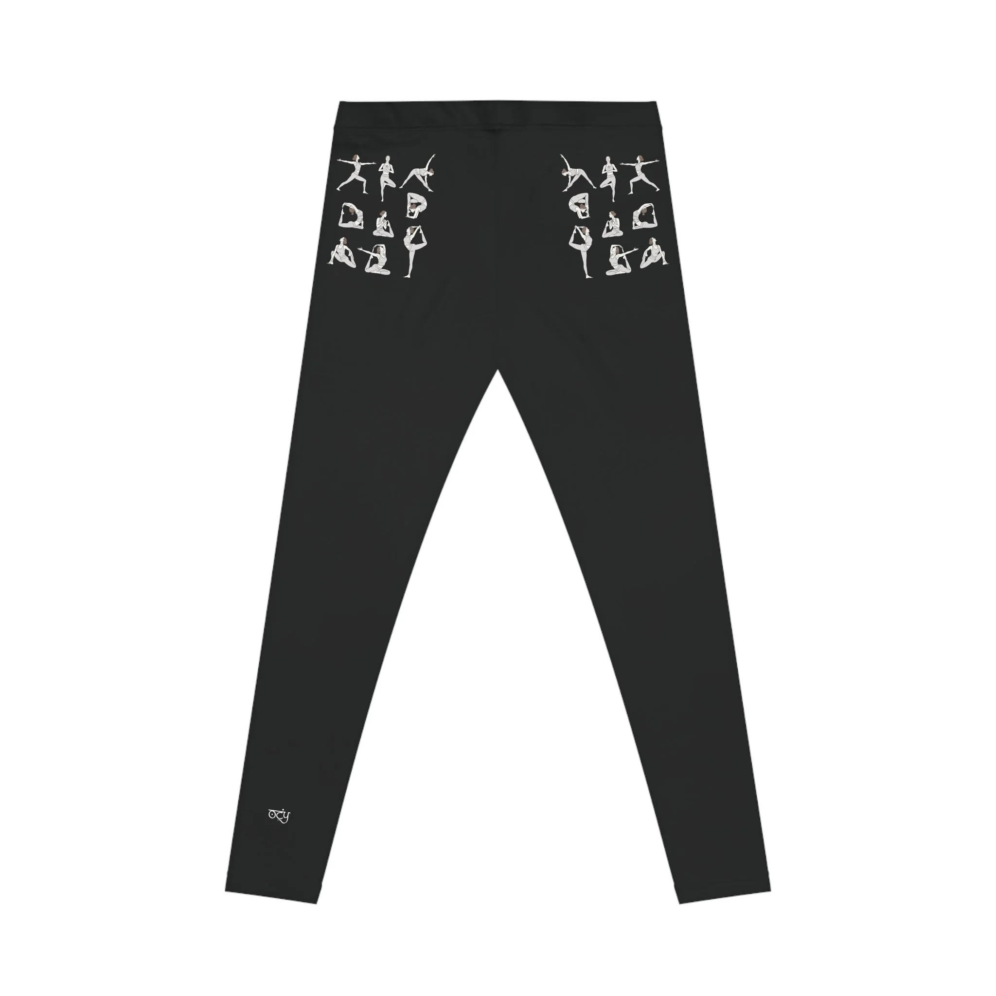 These black active leggings move with you. Eight yoga poses spread across front and back create a calm, rhythmic pattern that nods to practice without shouting for attention. The mid-rise, thin elastic waistband sits comfortably at the hips so you can stretch, bend, and hold poses without fuss. The fabric has a silky finish and vivid, long-lasting printing that keeps the pose illustrations crisp through wear and washes. Lightweight, durable, and with a responsive four-way stretch, they feel soft against the skin and return to shape after every session. Wear them to the studio, to a slow flow in the park, or while you cool down with a cup of tea after class — they layer easily under an oversized sweater or pair with a cropped top for a simple, mindful look.
