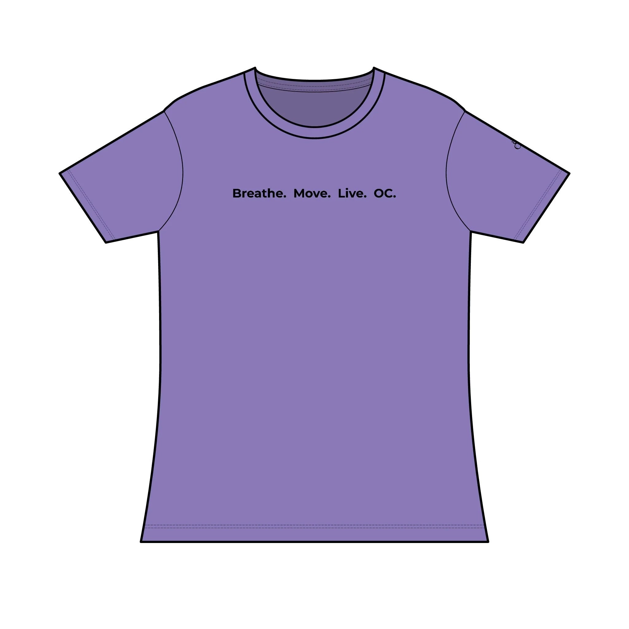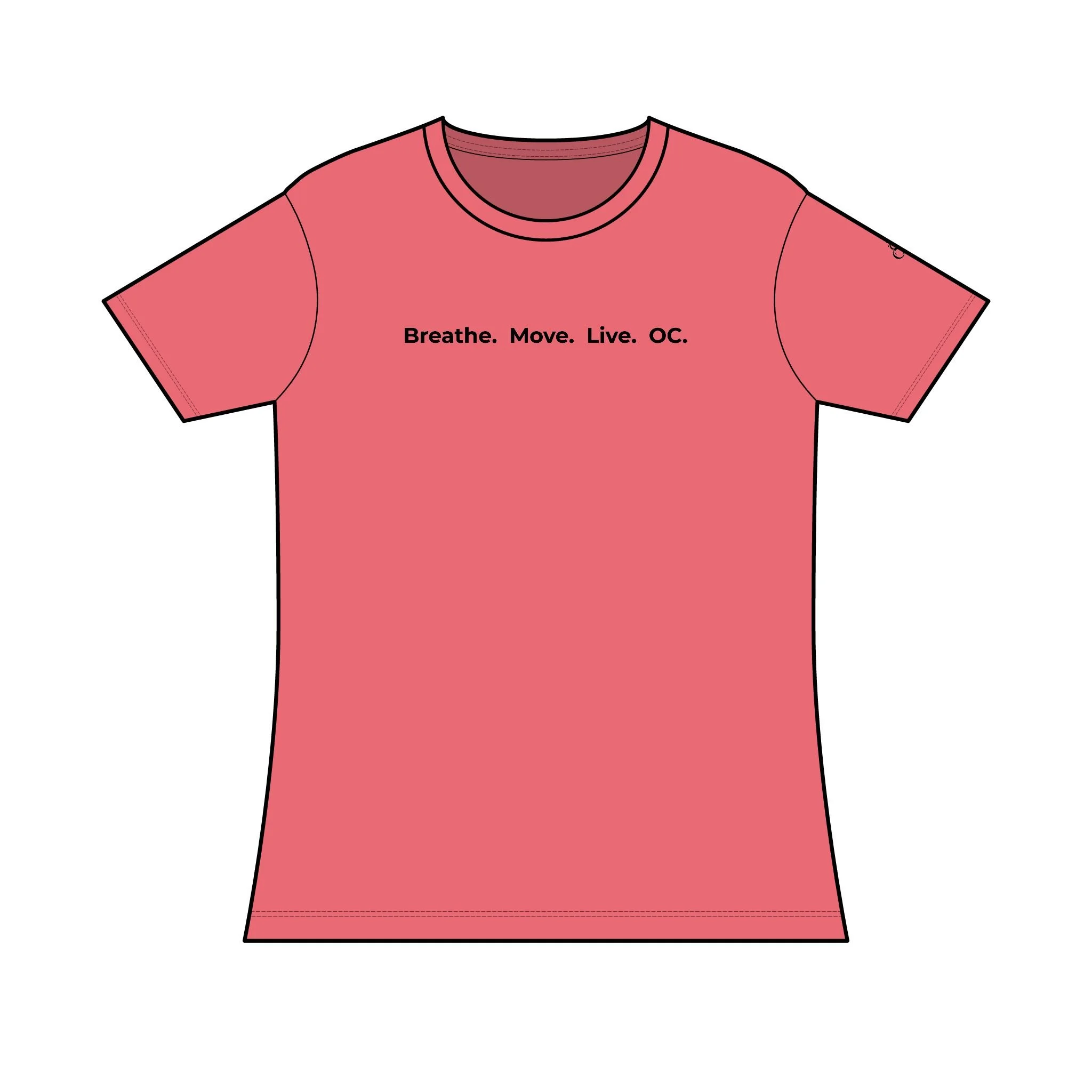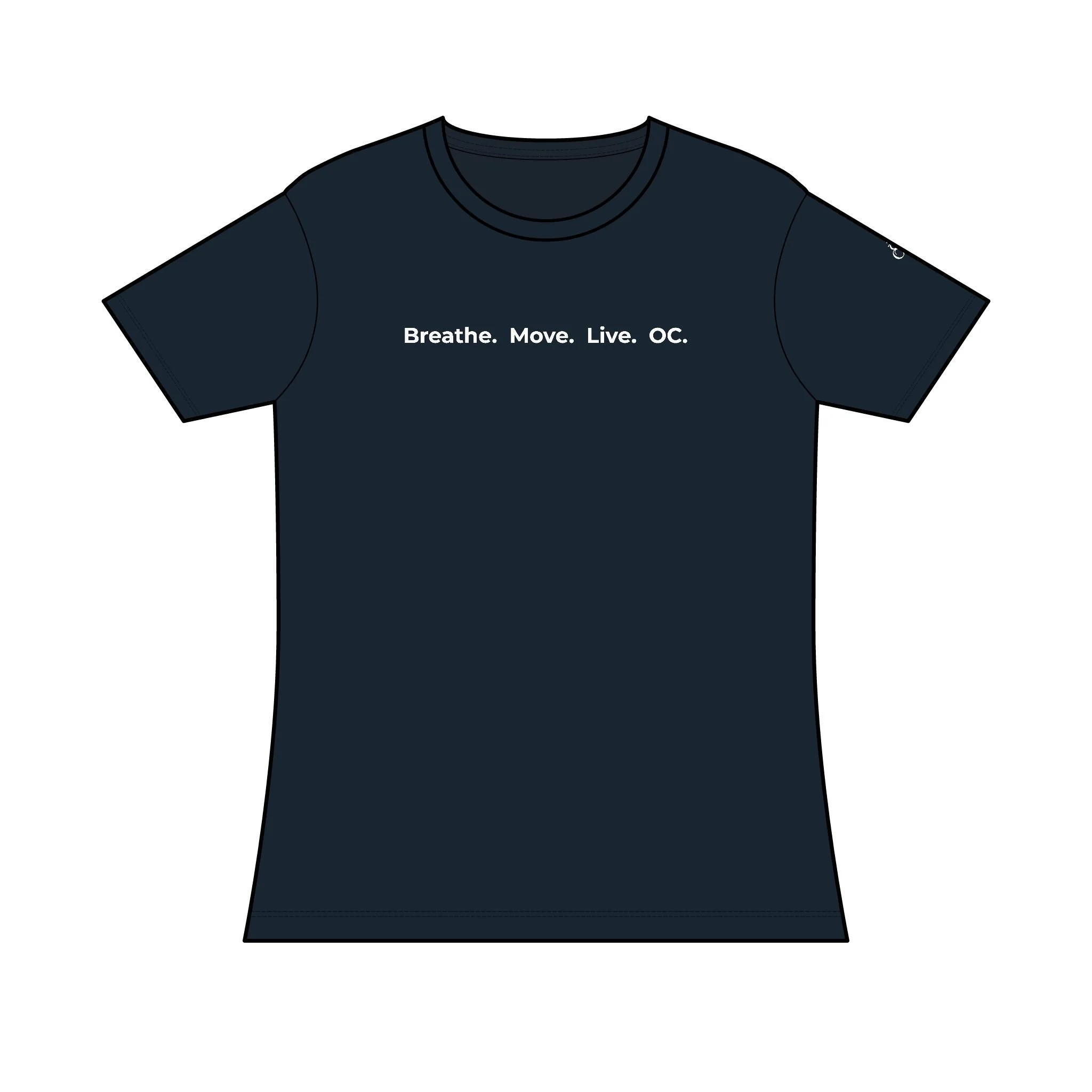 A lightweight, semi-fitted tee that moves with you and keeps its shape—soft against the skin with a clean, minimal front text that reads like a quiet mantra - "Breathe. Move. Live. OC." Breathable tri-blend fabric drapes gently for layering or solo wear, while reinforced seams and a ribbed collar ensure reliable fit through repeated washes. Tear-away label keeps the neckline comfortable. Wear it for low-impact movement, morning walks, or days when you want a simple reminder to breathe and keep going.