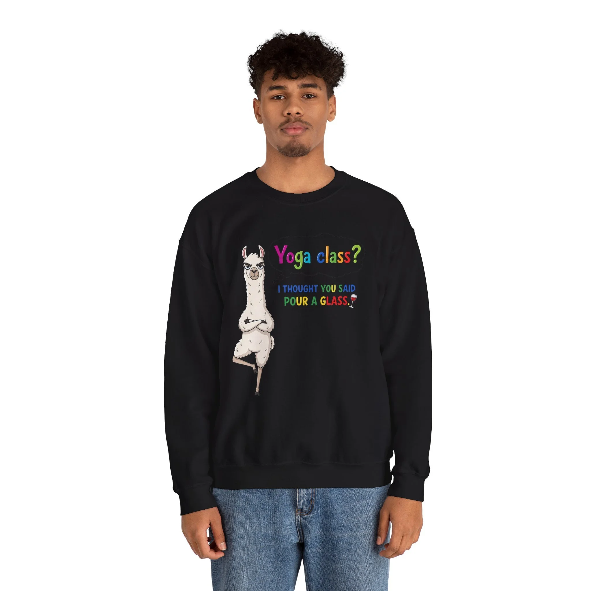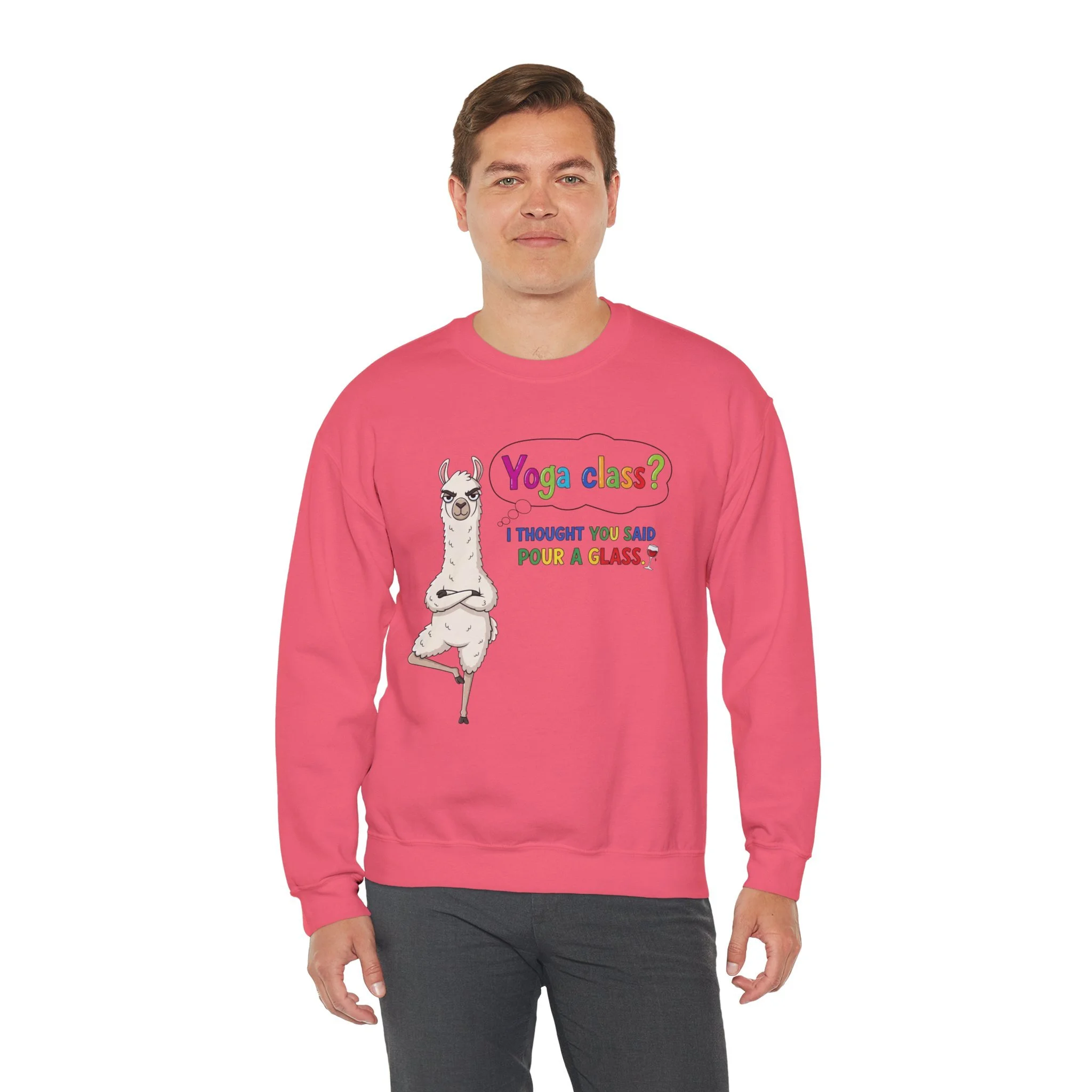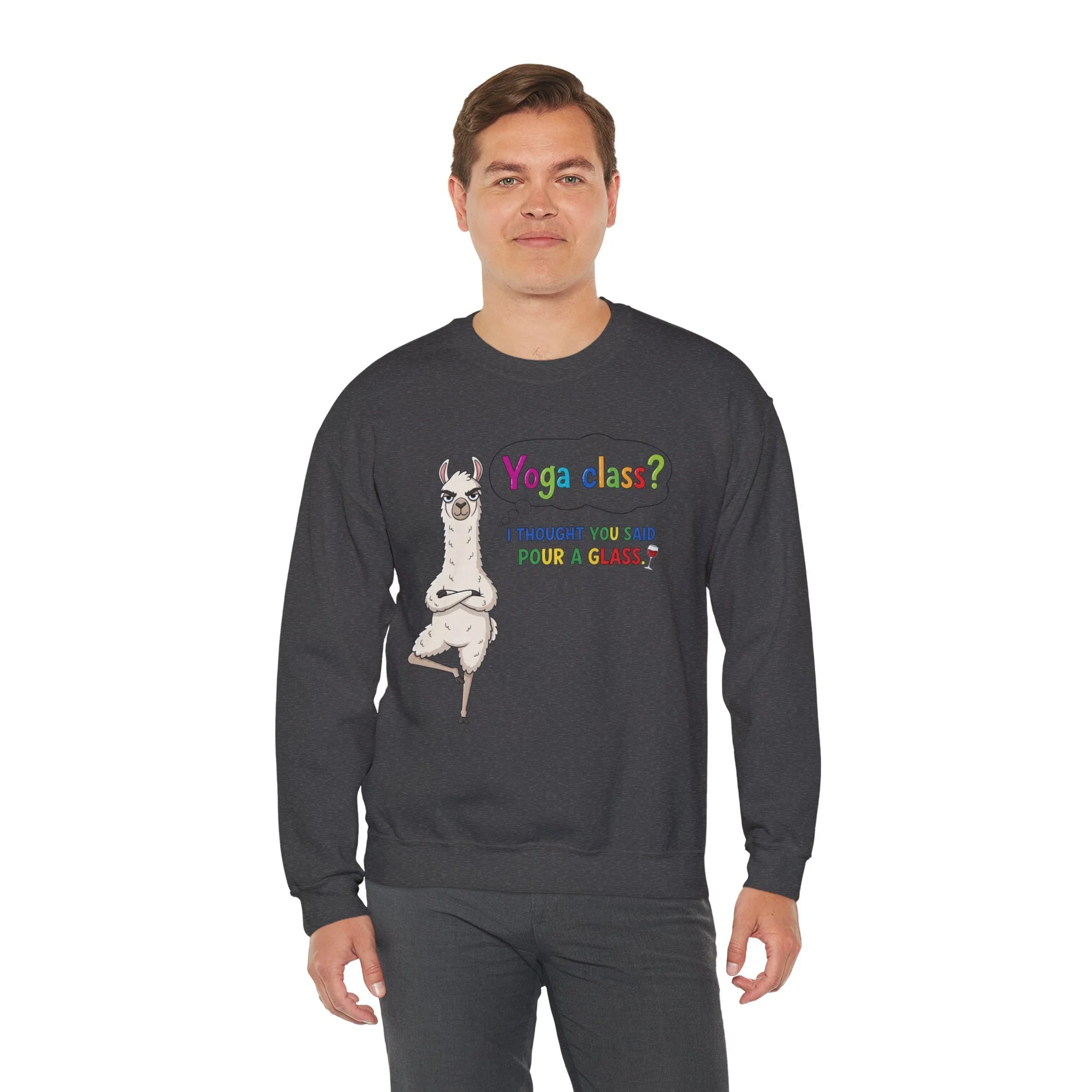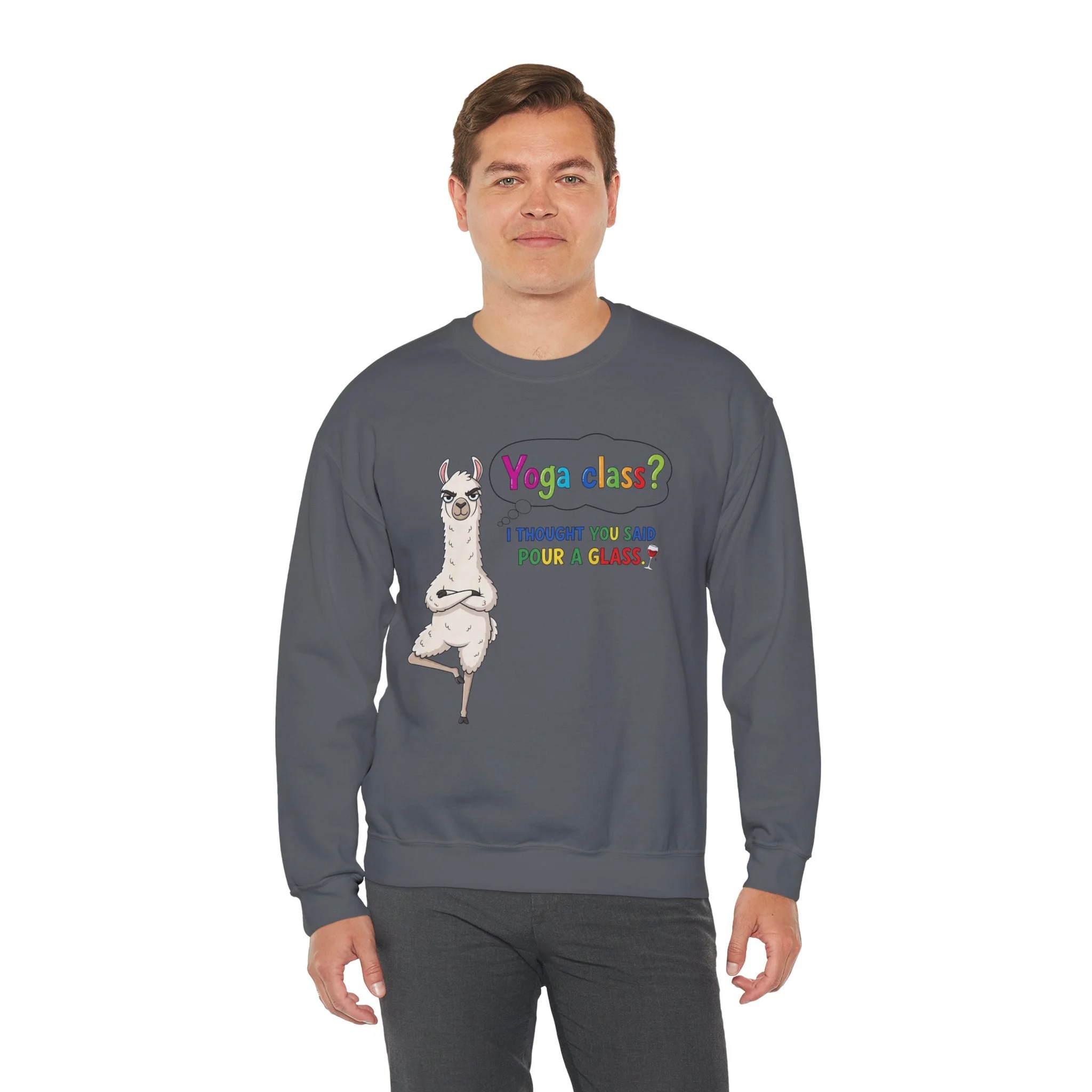 Funny Llama "Men's Yoga" Sweatshirt — Humorous Llama Yoga Crewneck