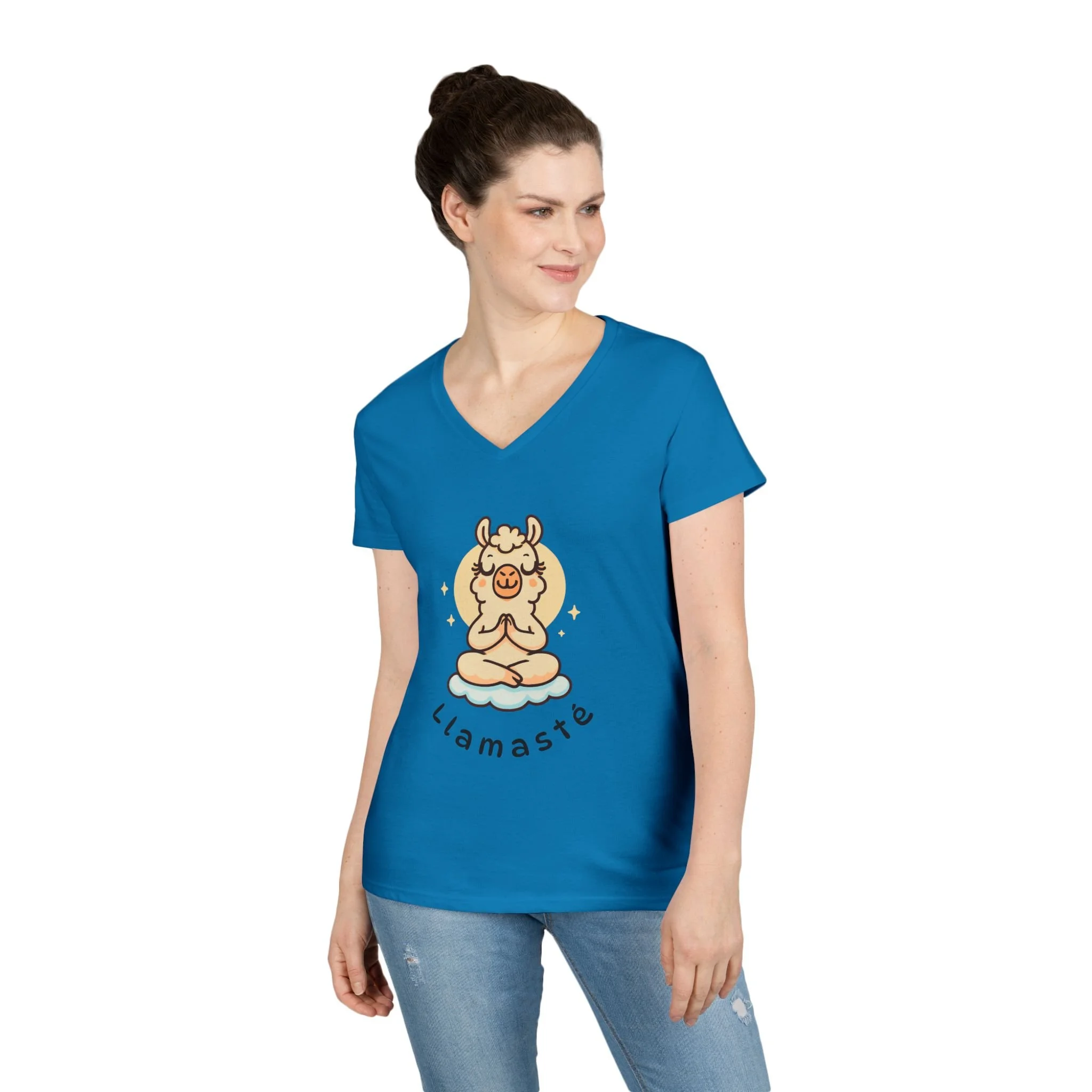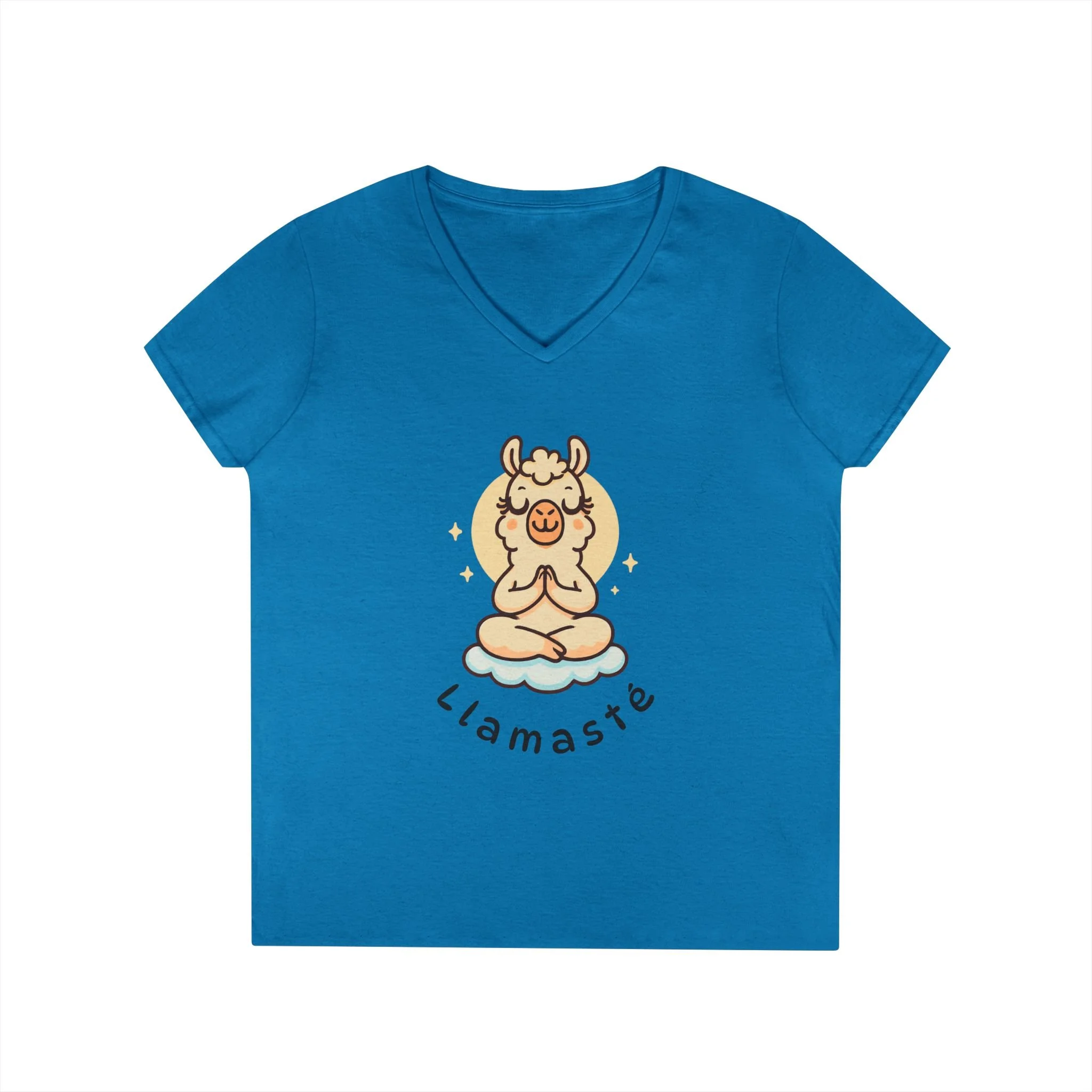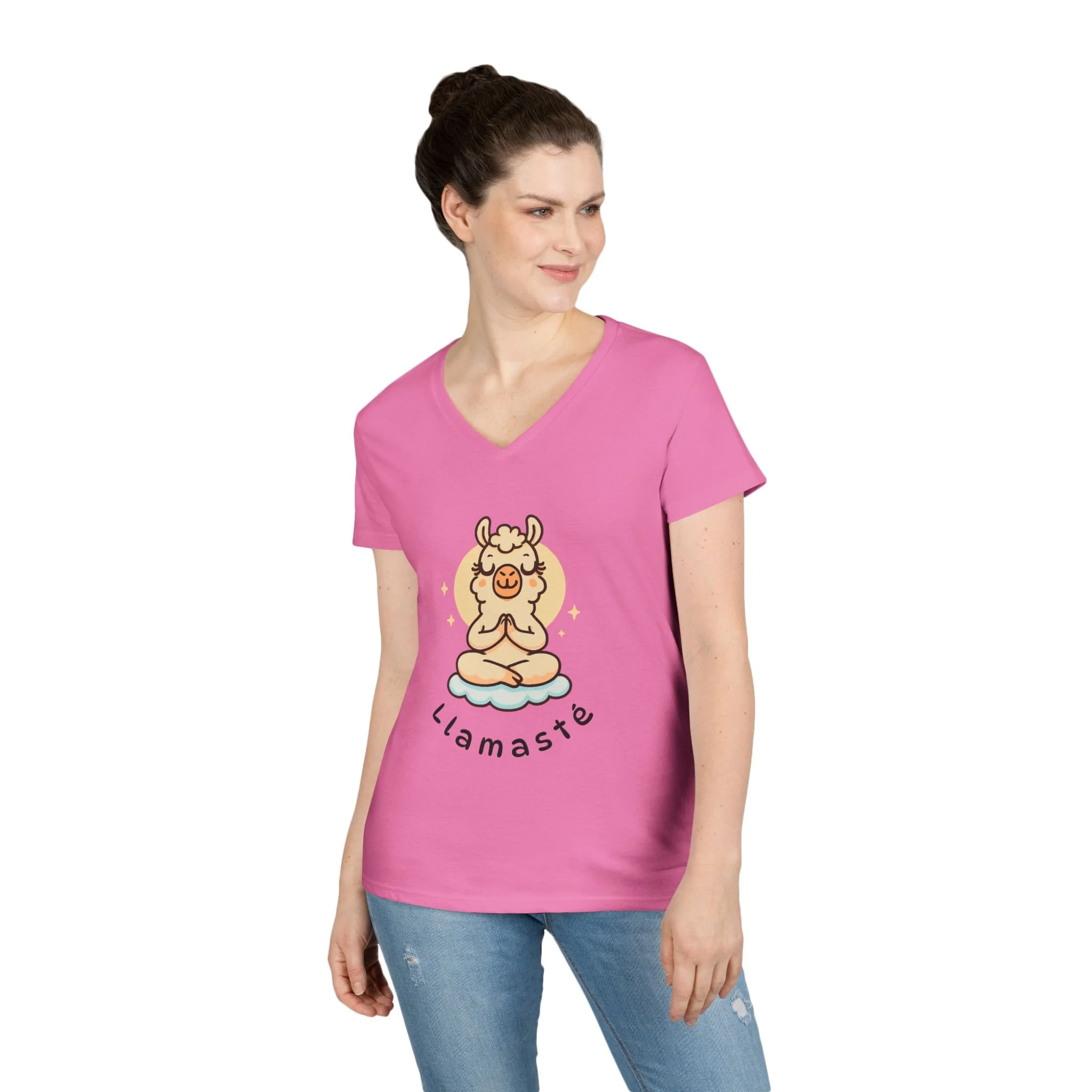 Llamaste Llama V-Neck Tee — Cute Yoga Llama Graphic T-Shirt