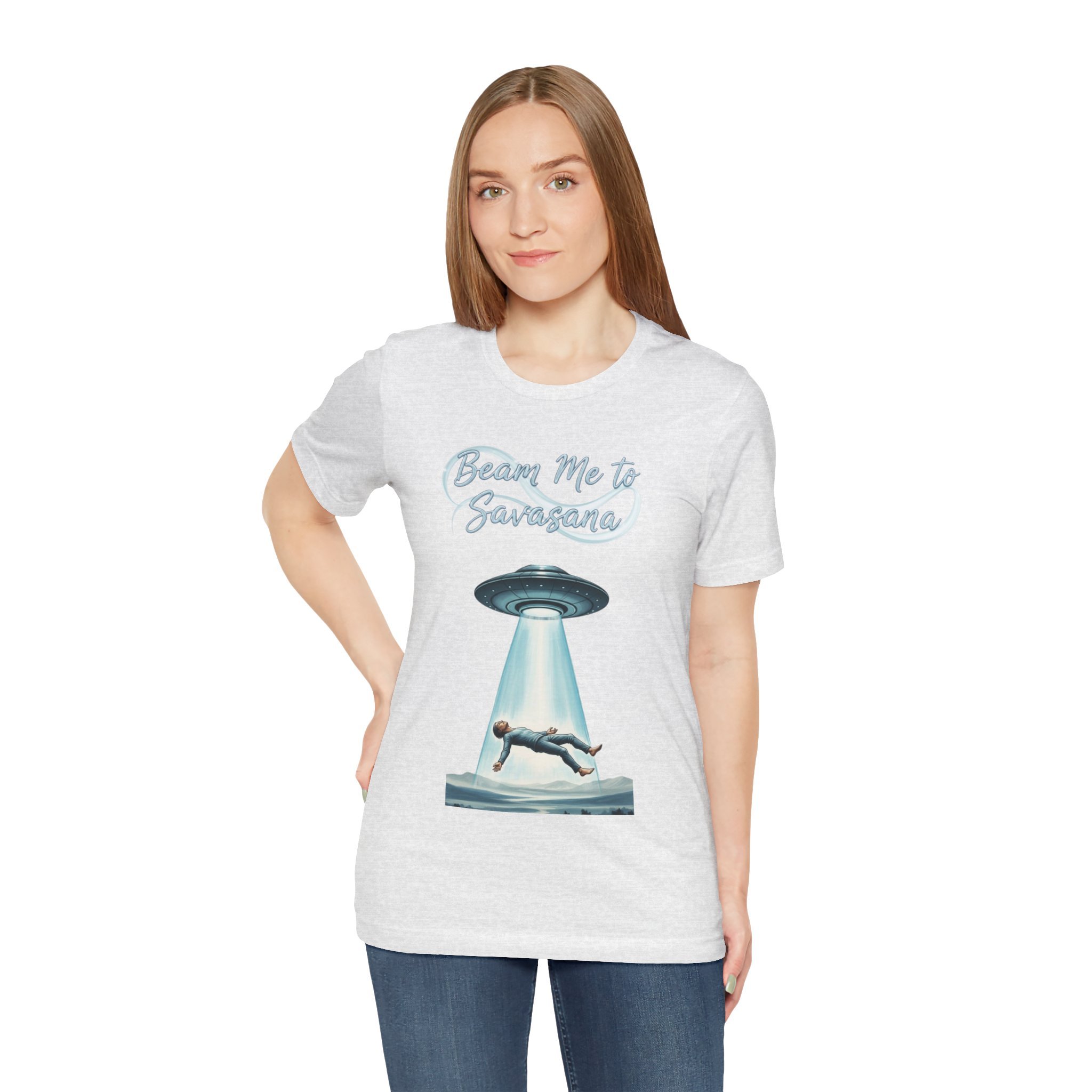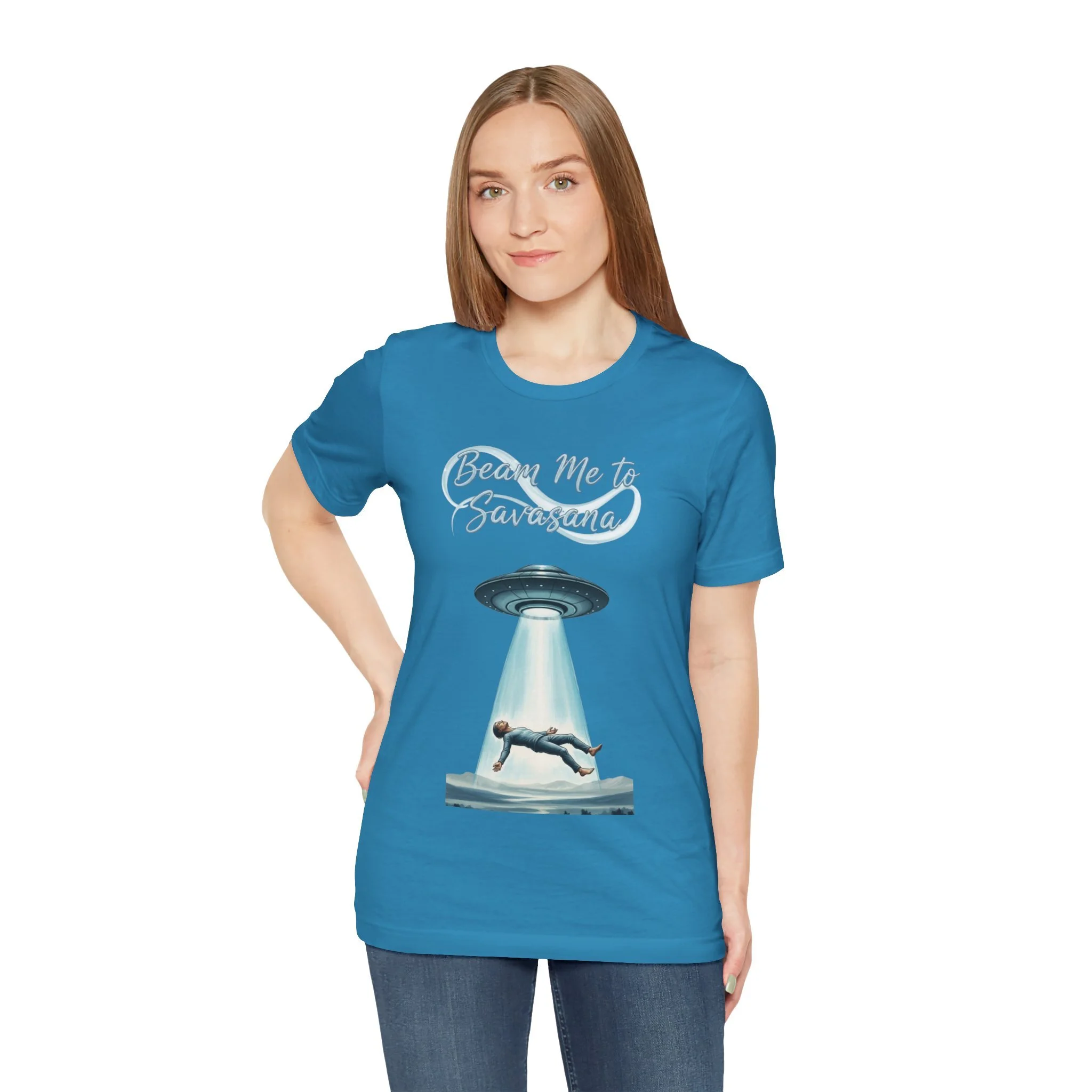 Soft, simple, and quietly joyful — this V-neck tee features a small meditating llama illustration with gentle golden accents and the playful word “Lamaste” beneath. The lightweight, 100% cotton fabric feels breathable against the skin and the semi-fitted cut drapes naturally for everyday movement. Subtle details like the ribbed knit collar, shoulder tape, and double-stitched hems keep the shape wash after wash. Wear it on slow mornings with tea, to a relaxed yoga class, or while curled up with a good book — it brings a little calm and a smile wherever you go.