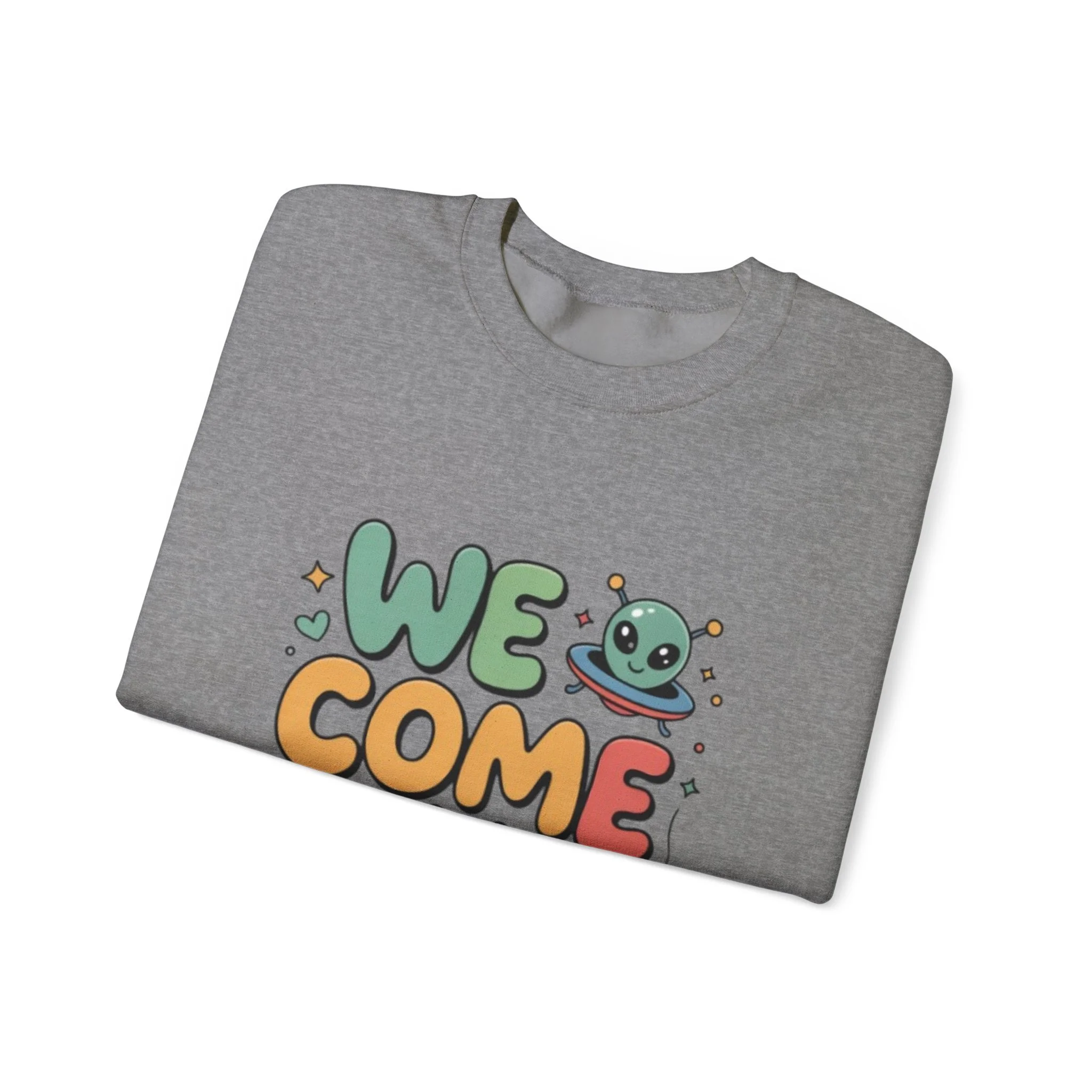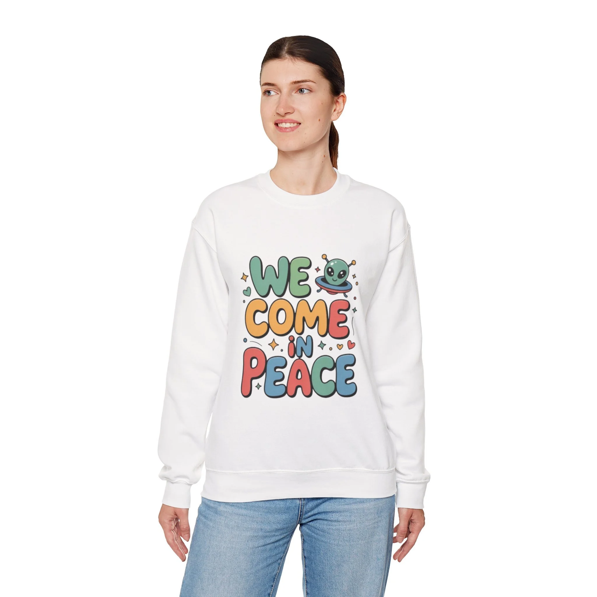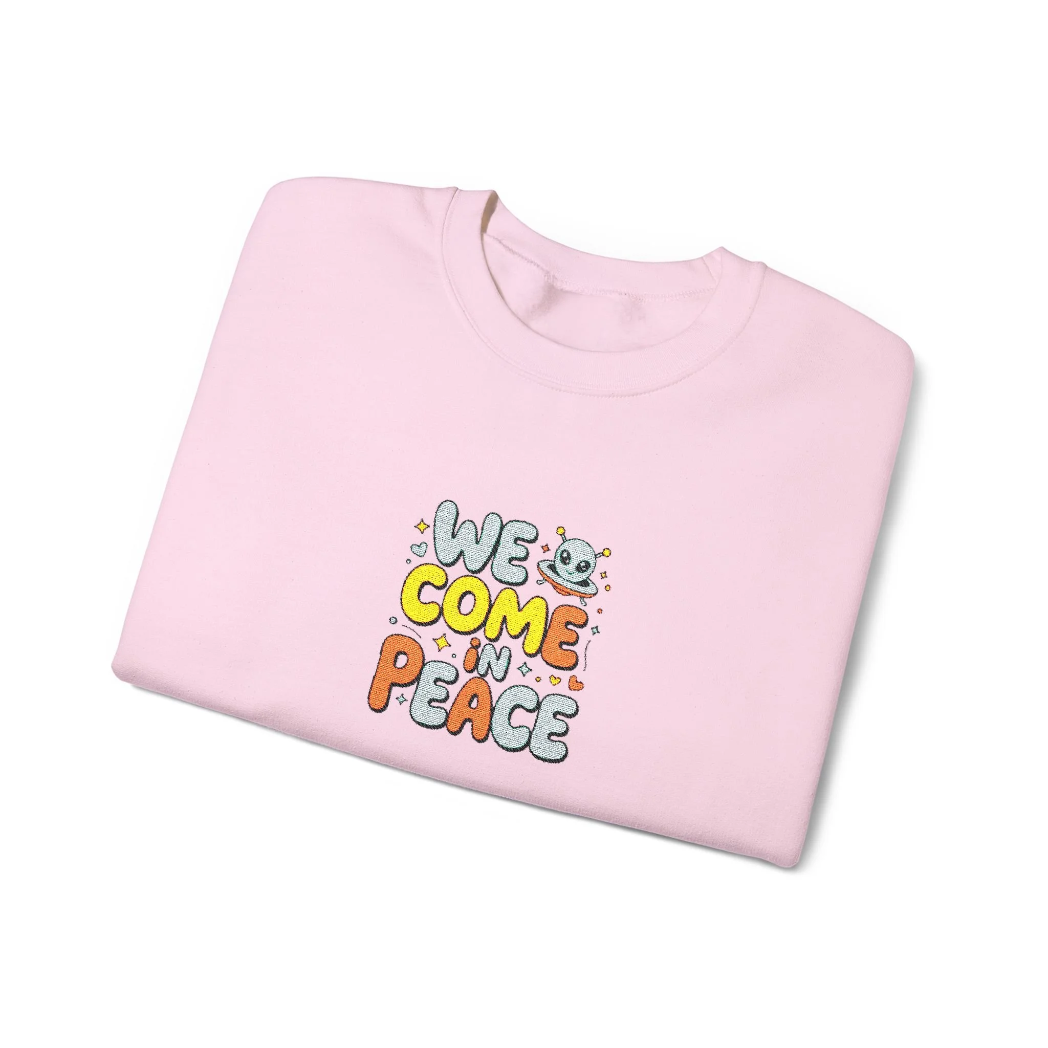 Little Happy Alien — "We come in Peace" Embroidered, Crewneck Sweatshirt — Unisex