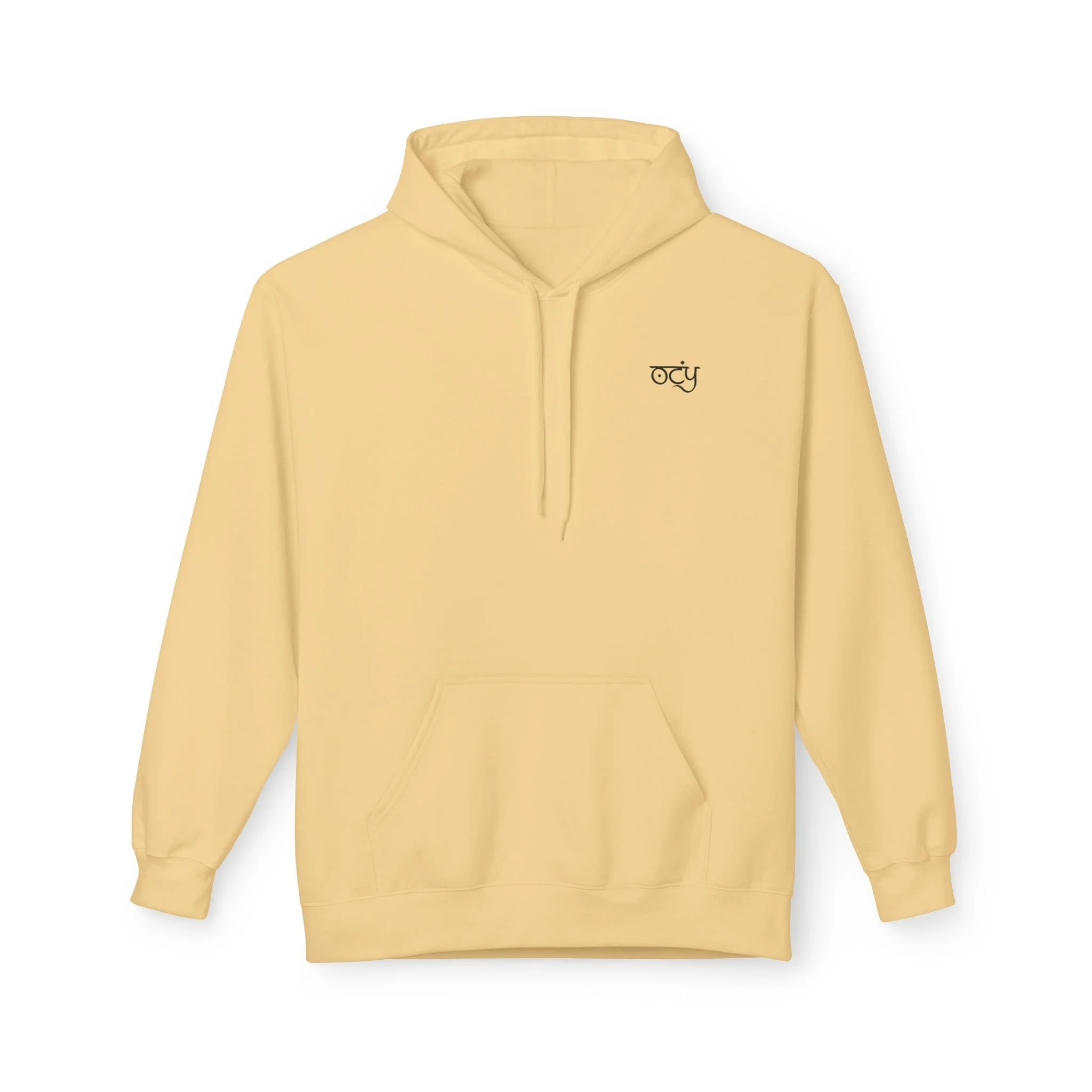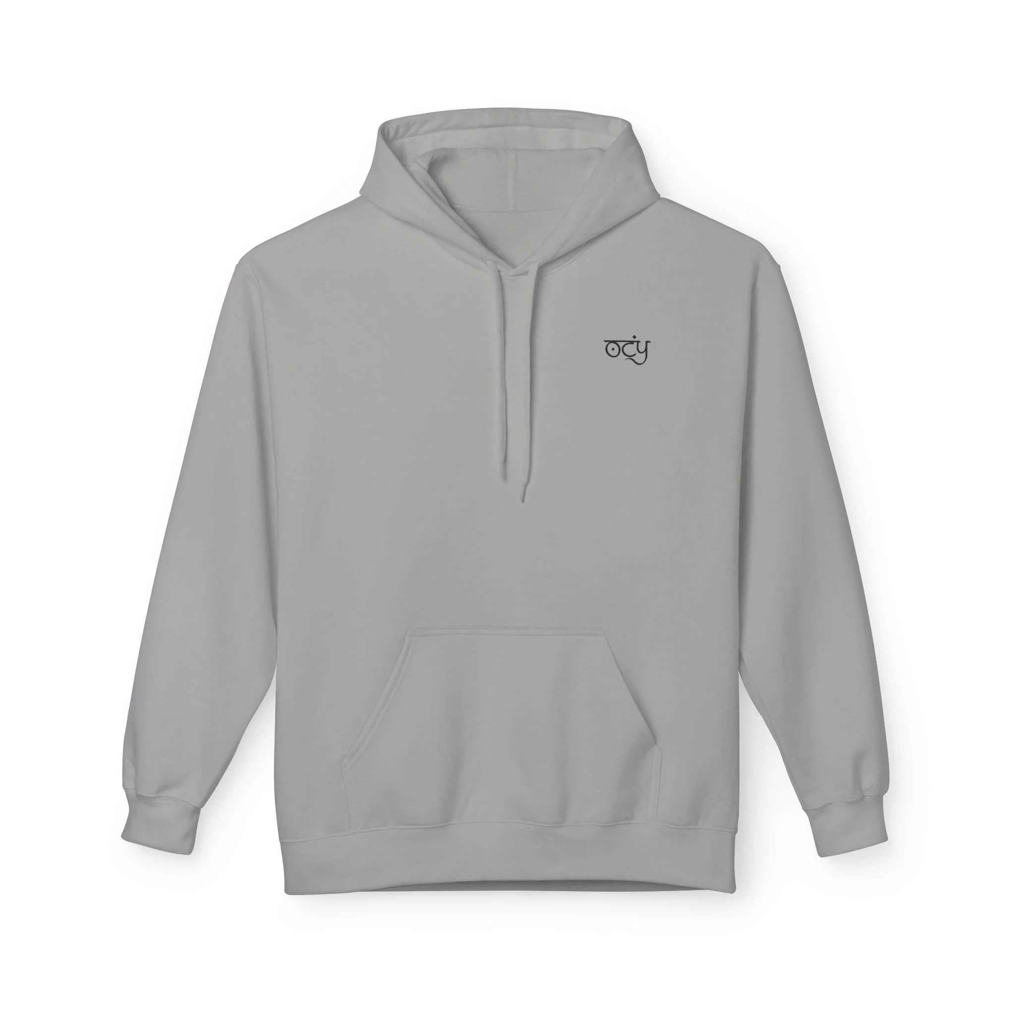 This hoodie carries quiet confidence. The OCY logo sits small and stitched over the heart while a white dragon lightning crest arcs across the upper back — detailed embroidery that feels tactile and intentional. Wear it on cool mornings walking the boardwalk, at studio sessions, or between sets at a local meetup. The tubular-knit body drapes cleanly, pockets hold a phone and keys without bulging, and the adjustable hood settles just right when wind picks up. The metal zipper gives a solid, weighty close; subtle wrist prints add a graphic edge. It’s made for folks who like craft and presence: understated front, dramatic back, and the kind of durable construction you keep reaching for.