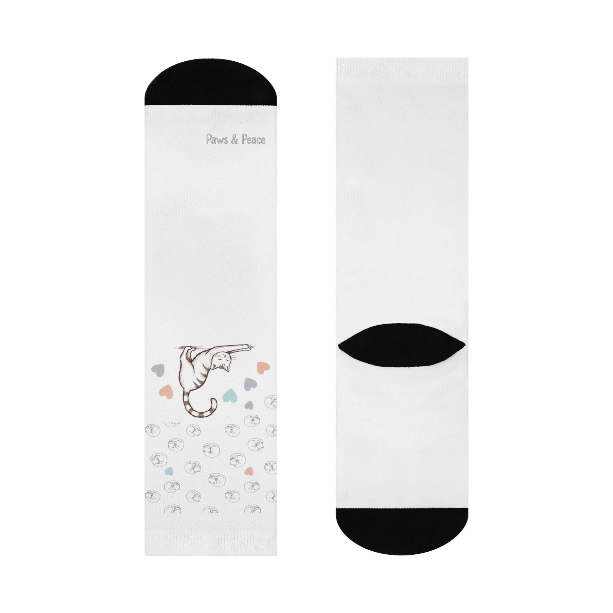 Paws & Peace Kitty Crew Socks — Cute Sleeping Cats Women's Cushioned Socks