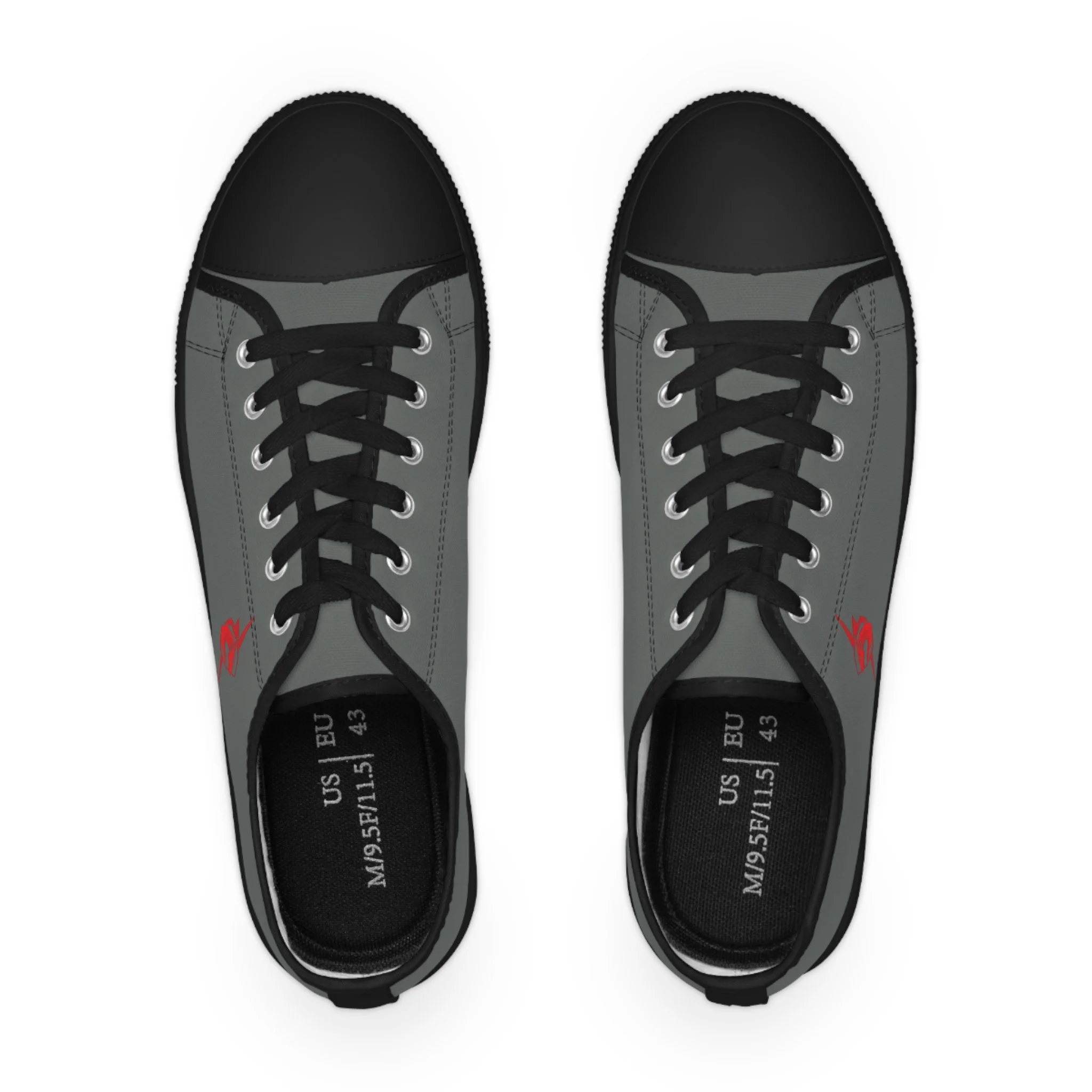 Red Dragon Emblem Men's Low Top Sneakers — Dark Grey Canvas