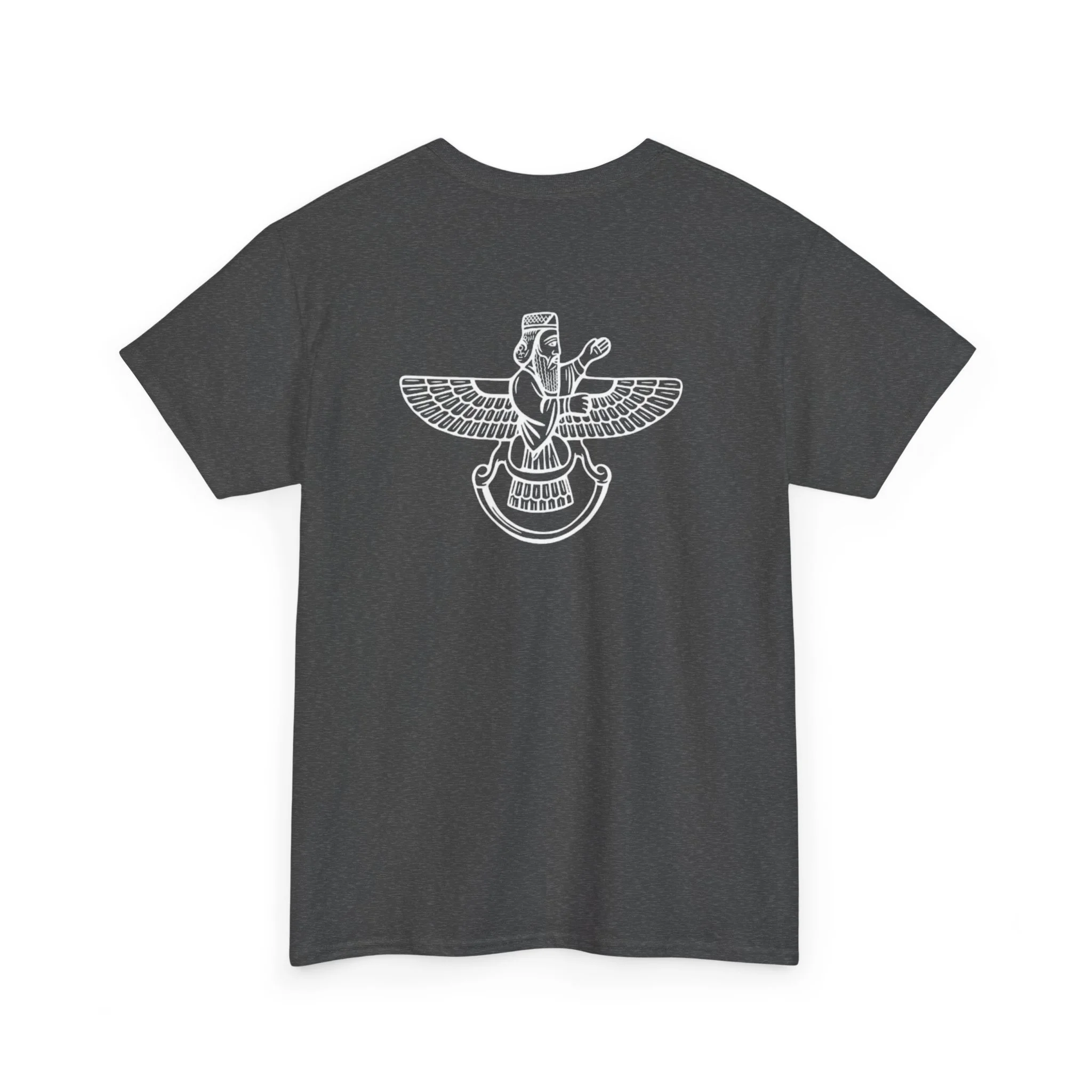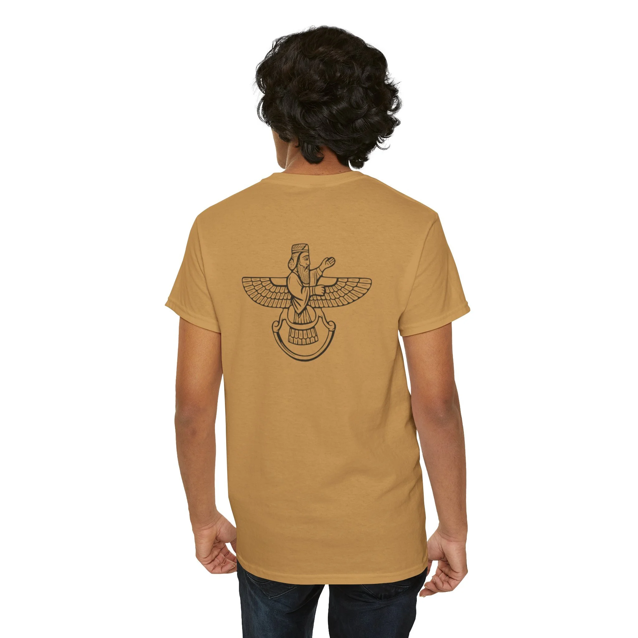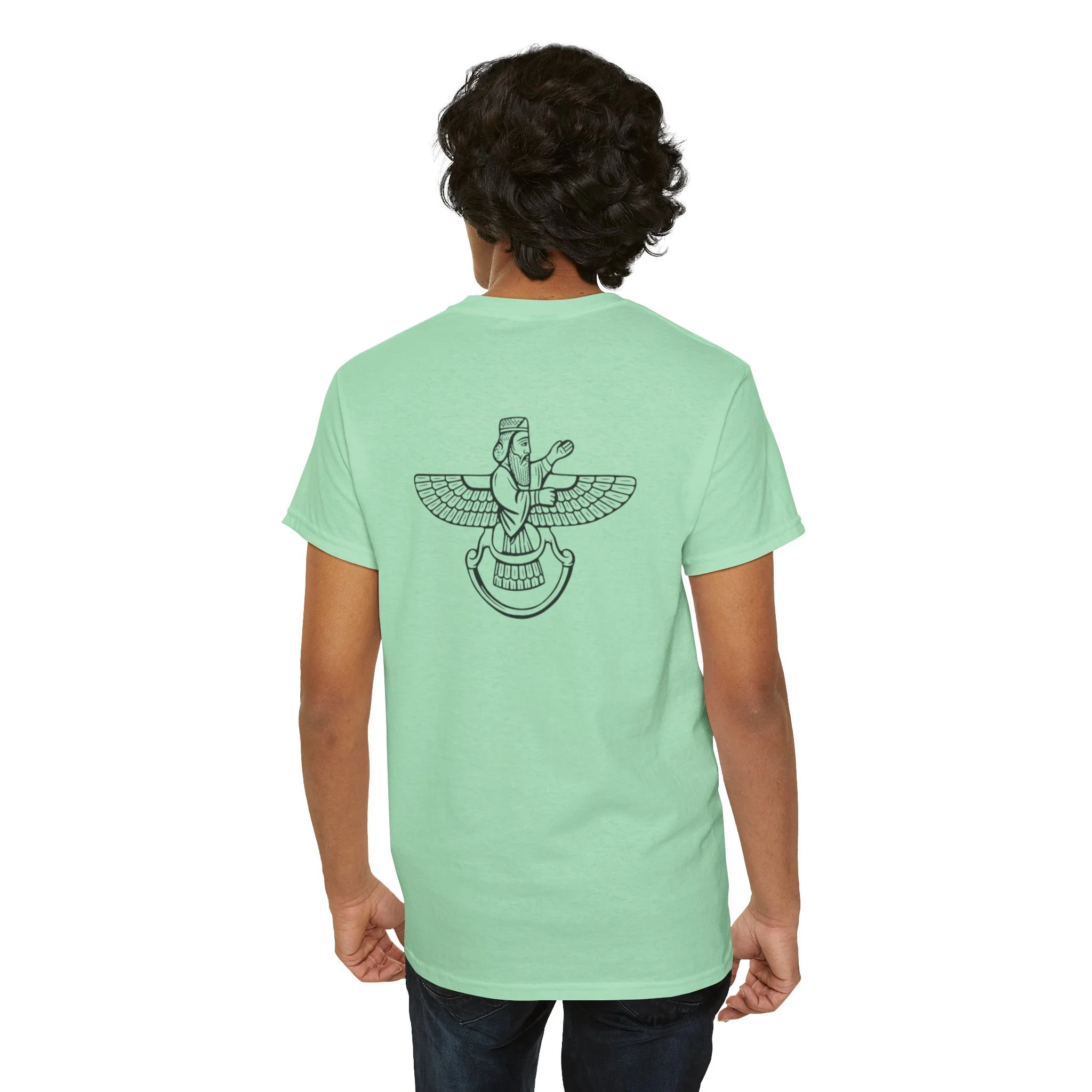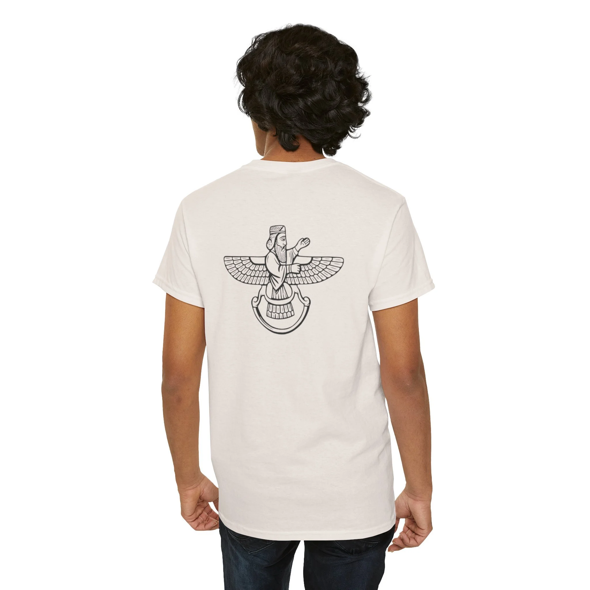 Unisex T-Shirt — Minimal Faravahar Zoroastrian Symbol Back Print