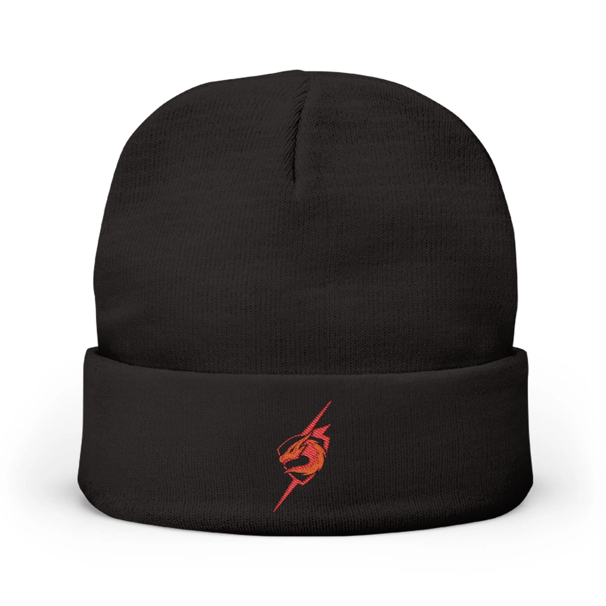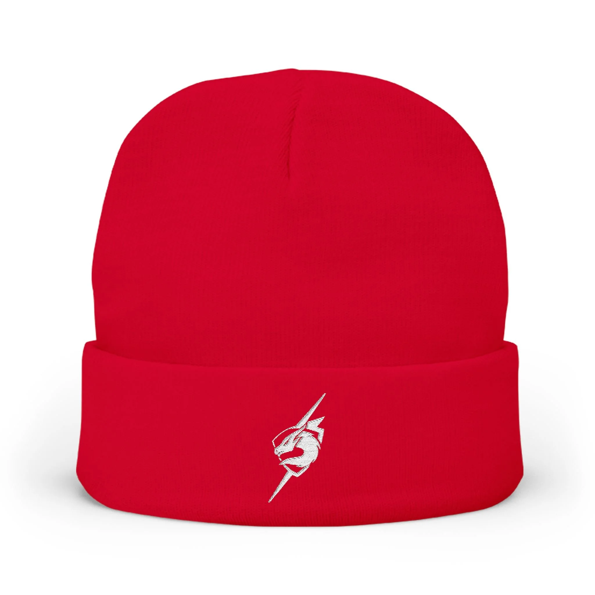 White Dragon Embroidered Beanie — Shield Sigil Knit Hat – Streetwear Winter Hat